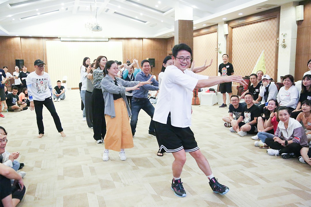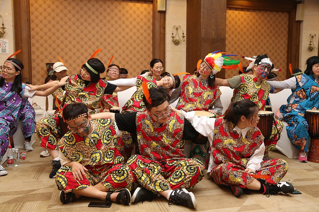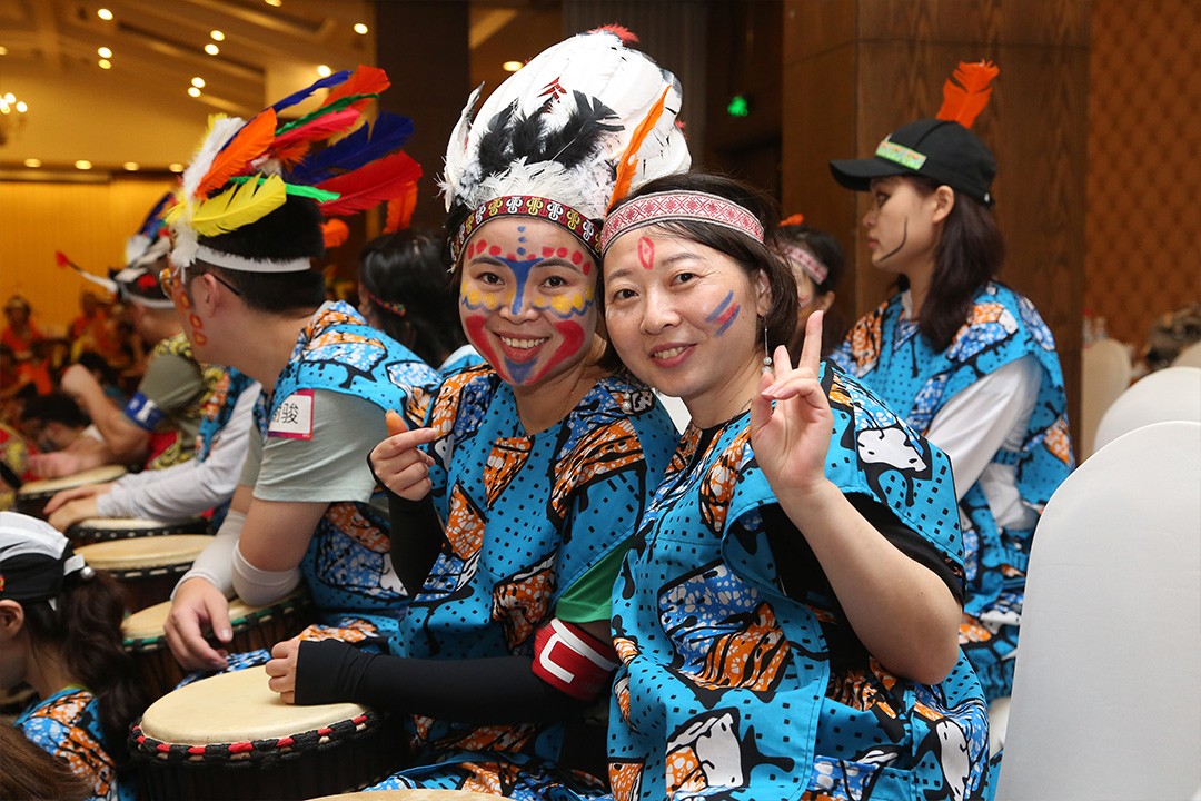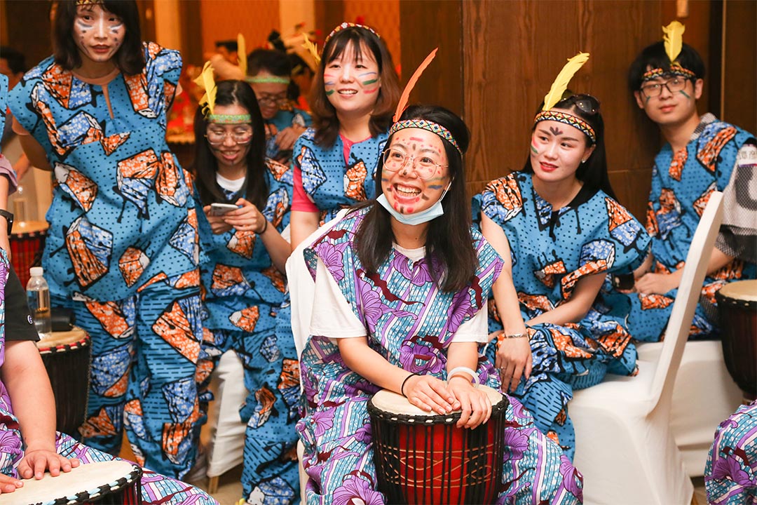 十二個(gè)小組,十二個(gè)部落,十二名酋長(zhǎng)。每個(gè)部落最終要集體展示出一場(chǎng)載歌載舞的演出,這似乎也是在向熱情的“非洲部落”做出某些回應(yīng),更像是一簇簇跳動(dòng)的火苗,為了某種使命,越湊越緊。看著這群“豁得出去”“不留余地”的可愛(ài)的伙伴們,酋長(zhǎng)和王妃正帶部落成員反復(fù)練習(xí)打鼓節(jié)拍,他們已經(jīng)忘了拍的太久手會(huì)紅腫這個(gè)難以避免的事實(shí);舞姬和歌姬能歌善舞,從她們的笑容中似乎感受不到一絲一毫的疲憊。如果那時(shí)你去問(wèn)大家這樣到底為了什么,我想你得到的答案可能會(huì)是:“為了部落!”。是啊,為了我們?nèi)蔬@個(gè)190多人的“大部落”。最終,各個(gè)部落表演之后,所有的鼓點(diǎn)、舞步、歌聲凝成屬于三彩人的完美樂(lè)章。一個(gè)節(jié)奏,一個(gè)聲音,一個(gè)團(tuán)隊(duì)。